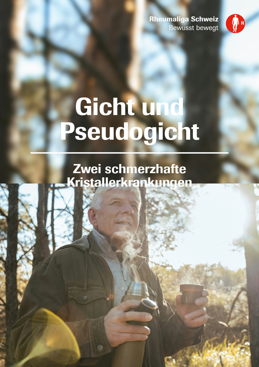 Gicht entsteht, wenn sich Harnsäurekristalle in den Gelenken ablagern, Pseudogicht durch Calcium-Pyrophosphat-Kristalle. Beide Erkrankungen verursachen starke Schmerzen, Bewegungseinschränkungen und können den Alltag erheblich belasten. Viele Betroffene berichten von wiederkehrenden Schmerzen, eingeschränkter Beweglichkeit und der Sorge vor dem nächsten Anfall. Neben den körperlichen Beschwerden belasten auch Unverständnis im Umfeld und das Gefühl, nicht ernst genommen zu werden. Die neu aufgelegte Broschüre der Rheumaliga Schweiz erklärt Ursachen und Symptome, gibt praktische Hinweise zur Behandlung und zeigt, wie Betroffene ihren Alltag trotz Beschwerden gestalten können. Sie schafft Verständnis, macht Mut und zeigt, wie sie aktiv zu ihrer Behandlung beitragen können.